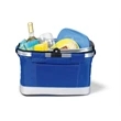 Make your company picnic one to remember with a product like the All-Purpose Basket Cooler! Our 18L x 11H x 10W cooler is made of 210 denier polyester with a PEVA lining and PU fabric backing (PVC free). The product is equipped with an aluminum frame, sturdy padded handle and hook and loop straps to secure flat for easy storage. This cooler is heat sealed and also features a removable floor board and collapses for easy storage. 30 can capacity.