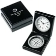 This beautiful black piano wood timepiece is also adorned with a compass. Find your way with this creation. Compass is not removable.