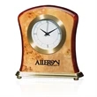 Since we all need to know the time, our Burlwood Clock will never go out of style! This unique piece measures 6 7/8 x 7 x 2 1/8 and will look great in any office or on any mantle or desk. Each piece is made of a naturally occurring material; slight variations may be present. Customize each clock with a laser engraved imprint, in one location. Perfect for displaying a brand name, logo or message. Batteries are included.