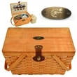 Have new and potential clients swooning over your brand with this settler picnic basket for four! The American-style settler basket has a romantic feel and includes a complete picnic set for four. Fully lined and hand woven with traditional wood slat material, it has a vintage appeal. It features swivel wood handles and faux leather straps and closure. This set includes coordinating melamine plates, cotton napkins, glass wine glasses, stainless steel flatware, a corkscrew and a convenient food cooler. Recipients will find it easy to spread the word about your brand with such a fun marketing tool!