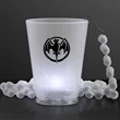 Take a shot on this 1.5 oz. red light up shot glass! A fun handout for bars, corporate parties, weddings, and other promotional events, this custom shot glass comes on a red party bead necklace. Be sure to add your pad printed logo for maximum brand visibility. Put this shot glass around the necks of every guest, offer a shot special and watch the memories flow! This product is CPSIA compliant. It is not for children 12 and under. Blank or imprinted.