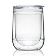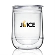 Keep your cool with these dynamic, double-walled plastic tumblers. The Bumble mug is 3" x 4.5" and holds a generous 10 ounces of your favorite beverage. The snap-on lid keeps your drink secure, and lets you take it with you on when you're on the go. Available in clear only, add your school, sports team, charity, club, organization or business logo or message through our screen print process to create a branded tumbler that makes a great portable juice glass for restaurants, hotels, and other service industries and pursuits.
