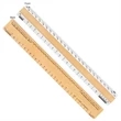 Maple wood frame 12" Architectural 2 Bevel Ruler with two white plastic scales on the front side and all wood backside with the scales printed directly on the wood. It comes with 1/8"-1/4" Architectural Reduction and 1/2"-1" Architectural Reduction on front and 1/8"-1/4" Architectural Reduction, 3/8"-3/4" Architectural Reduction and 16" center on wood back. An architectural ruler for the building trades; this marketing tool is an ideal choice for elevator manufacturers, drywall contractors, heating & air conditioning contractors and general contractors.