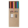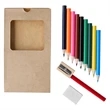 Bring out the artist in you by spending time with the 12-piece art kit. This kit contains an eraser, a pencil sharpener, and 10 assorted colored pencils. All the colors included with this kit are: dark green, light green, blue, light blue, black, brown, yellow, red, orange, and pink.