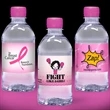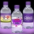 12 oz Natural Spring or Purified in a clear bottle with custom, full color, full-wrap, waterproof label and your choice of one of our Premium Cap Colors: Yellow, Tangerine Orange, Orange, Red, Ruby Red, Pink, Fuschia, Purple, Berry Blue, Baby Blue, Lime Green, Green, Chocolate, Silver or Gold. For pricing with standard cap colors, Clear Frosted, Blue or Black, please see item 12FLATC. Bottle made from recyclable heavy gauge PET Type 1 material. Monitored and tested for taste and purity. Optional blue tinted bottle is available (see 12Flatb). Ask about our "Low Pallet Shipping Rates"