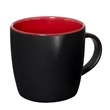 Help clients start off their morning right with this 12 oz. ceramic! Customized with a brand name or logo, you can make a lasting impression with every sip. Each mug features ceramic construction, a black matte exterior and a glossy colored interior. It's a great marketing tool at diners, restaurants, hotels, office buildings, conferences and much more! This product is hand wash only and measures 3.5"H x 3"D.