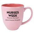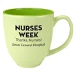 Bistro Style Wide Body Mug. Pastel Color Exterior. Glossy Vibrant Inner Finish. Big Bistro Handle For Comfortable Sipping. Meets FDA Requirements. Hand Wash Recommended. Not Recommended for Commercial Use.
