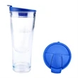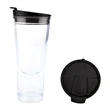 Customers can chill out with your brand thanks fo this custom cup! Designed with a 14 oz. capacity, this cup features an ice chamber in the base that cools your drink without watering it down. It's made of BPA-free plastic, has double wall constrcution and includes a snap-on, sip through locking lid. It's ideal for use with both hot and cold beverages and can also store keys or money in the bottom compartment. Please note, the item may leak if tipped or held upside-down. Hand wash only. Do not microwave. Freezer-friendly.