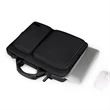 Made of quality waterproof polyester. Internal dimension: 16.1" L x 1.3" W x 11.8" H ; external dimension: 16.7" L x 1.5" W x 12.4" H. Top-loading zipper on the sleeve glides smoothly and allows convenient access to your laptop computer. With an adjustable shoulder starp, comfortable and easy carrying. Your custom logo and PMS colors can be imprinted.