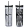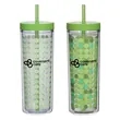 AS Material. Screw On, Spill-Resistant Lid With Matching 9" Straw. Circles Change Color When Ice-Cold Beverages Are Added. Meets FDA Requirements. BPA Free. Hand Wash Recommended.