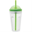 Squeeze out every bit of exposure and publicity with this all-in-one juicer and drinking tumbler! This 3.75" x 9.25" x 4.19" acrylonitrile styrene vessel holds 16 ounces, and comes with a hinged dome lid that doubles as a juicer with a polypropylene color band and drinking straw. Give a twist to an orange, lemon or lime to create or top off a delicious and nutritious beverage then drink it without re-pouring! Choose your accent color and add your organizational or company logo, emblem or message to customize. BPA free.