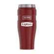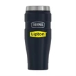 Make the most of your daily work or school commute with this tough and durable Thermos® container. The Stainless King™ is 3 3/10" x 3 3/10" x 7 4/5" with double-wall vacuum insulated stainless steel construction that maintains the temperature of 16 ounces of hot beverages for up to seven hours or refreshingly cold for as many as 18. Design features include a DrinkLock™ leak-proof lid and built in hook for making tea. Choose from three colors and add your school, sports team, organizational or company logo, emblem or message to customize.