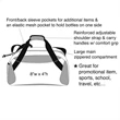 Front/back sleeve pockets for additional items & an elastic mesh pocket to hold bottles on one side; Reinforced Adjustable shoulder strap & carry handles w/ comfort grip; large main zippered compartment; Great for promotional item, sports, school, travel, etc...