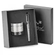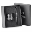 Gift set includes P529 2-piece gift box, T236 Addi Flash speaker and I139 Axel pen/stylus/phone holder. Corresponding accessories, including cables, for the tech item(s) in this gift set are packaged underneath the foam and cardboard layers of the box.