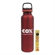 20 oz satin stainless steel vacuum tumbler with handle lid. Comes with an iced tea mix.