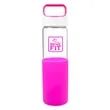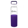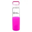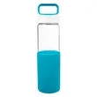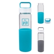 Made Of High Borosilicate Glass With Silicone Sleeve. Screw On, Spill-Resistant Lid. Wide Mouth Opening. Easy Carry Handle. Not For Hot Liquid Use. Meets FDA Requirements. BPA Free. Hand Wash Recommended.