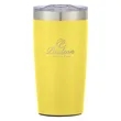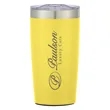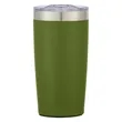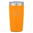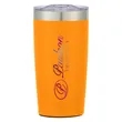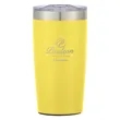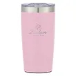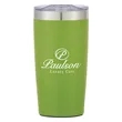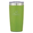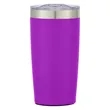 Stainless Steel Outer And Inner. Powder Coated Finish. Double Wall Construction For Insulation Of Hot Or Cold Liquids. Snap-On, Spill-Resistant Thumb-Slide Lid With Rubber Gasket. Due To Vacuum Insulation Technology, Capacity Is 18 Oz. With Lid On. Keeps Drinks Hot Or Cold Up To 6 Hours. Non-Slip Bottom. Meets FDA Requirements. BPA Free. Hand Wash Recommended.