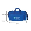 21" Deluxe sport bag. Extra large shoe pocket on side with zipper closure. Reinforced carry handles & adjustable shoulder strap with pad. U" shape zippered main compartment with front zippered pocket for additional items. Pen loop & key clip on front. Side pocket for Accessories. Slot on back can slip right through your yoga mat or towel (not shown). (Accessories Not Included). Multipurpose Duffel Bags, High Density Nylon Storage Bags, Storage Duffel.