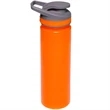 Promote your brand with our 22 oz flip top sports bottles w/ screw-on caps water bottle in your next advertising campaign! Made of high quality plastic, these water bottles feature a screw-on caps & easy carry handle. This sports water bottle measures 9.50" h x 2.60" w and features a large imprint area of 2.25"W x 4.00"H. They're available in a wide variety of bright and fun colors and can be purchased unimprinted or with a silkscreened imprint of your branding information. These are the perfect way to gain visibility at trade show, company picnics, marathons, football, baseball, and more!