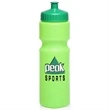 Advertise your brand with our 28 oz larger sports bottle w/ custom imprint water bottle. The 9.8" h x 2.8" w x 2.25" brim sports bottle is made of recycled high-density polyethylene and comes in a wide variety of vibrant colors that are sure to catch a second glance from new and potential clients. This trendy sports water bottle also features a large imprint area of 3.00"W x 3.50"H ideal for maximum brand exposure in events, trade show and games. Easy to grip, easy to sip and easy to close, it's sure to make a lasting impression. Simply add your company's name, logo or promotional message to create a marketing tool that everyone's sure to love.