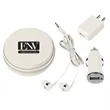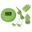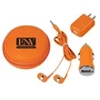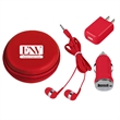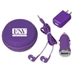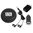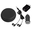 Includes Car Adapter, UL Listed USB A/C Adapter (UL File #E340754, Model #SC Series) And Earbuds. Protective Round Zippered Travel Case. Interior Mesh Pocket. Matching Earbuds With 48" Cord.