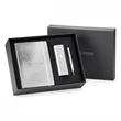 Gift Set Includes:. P912 2-PIECE GIFT BOX (9.5 x 12 3.25 in height). ST4143 (BLACK) or ST4175 (SILVER) NEOSKIN HARD COVER JOURNAL. T242 IMPACT WIRELESS STEREO SPEAKER. I128 GLACIO PEN/STYLUS. Corresponding accessories, including cables, for the tech item(s) in this gift set are packaged underneath the foam and cardboard layers of the box.