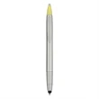 Make a practical investment on this 3-in-1 action pen just for you! This pen features a ballpoint pen that writes in black ink. Simply twist it to reveal a highlighter with a chisel yellow tip. When retracted, this product reveals a stylus for all your touch screen devices!