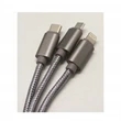 Promote your brand with this exciting tech item, a 3 in 1 braided Micro, Type C and Apple Lightning compatible charging cable that is over 6 foot long. It has an universal design with a Type C, a Micro USB and an Apple Lightning compatible adapter. The cord is nylon braided in gray color for premium durability. The longer middle gray plate is ideal to be imprinted or laser engraved with your logo or message. This safe and top quality cable can be used for phone and other portable device charging. It is a perfect give away accessory in today's tech environment and for everybody's personal daily use. It is CE and RoHs certified.