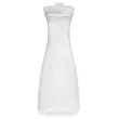 The sleek and elegant design of this carafe makes a perfect addition to your serveware collection! Made of plastic, our carafe shaped pitcher measures 9.5"H x 4"W (base) and is designed with a 34 oz. capacity. It's also BPA-free and comes with a lid mouth opening for easy serving. The lid matches the body color - choose from smoke or standard clear. Please note, this item should not be filled with hot water; cold beverages only. Fill it with water and a few lemon slices, white or red wine and just and set it on a table at your next event. With customization options to add a brand name, logo or other message, you can create a stand-out item for tabletop display!