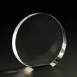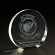 Celebrate achievements with our small 3D circle crystal award. This 5 x 4 3/4 x 1 1/4 piece will stand out when displayed on any surface. Utilizing the latest sub-surface laser engraving technologies, your images are engraved inside one of our many stunning pieces. For best/most dramatic results, art should be supplied as a true 3D model in a dwg file. This stylish item will enhance any company celebration; recognize success by ordering today.