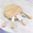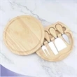 4 Piece Set Board. The measure is 7.5" Diameter, 4 Tools: Approximately 5" Long Stainless Steel Smoothed Wooden Handles Cheese Knives are Sharp and Easy to Use Easy to Wash Custom Engraving Available. This gift set is perfect for anyone and any occasion. This wooden cutting board makes the perfect canvas for snacks and appetizers.