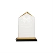 Recognize a classic come from behind sports victory, the conquering of a sales goal, years of dedication to a company or great works in public service with these handsome awards and award accessories. This 4 5/8" x 1 5/8" x 6 1/2" acrylic trophy features a 1/2" thick triangular topper on a black pedestal base. Add your school, sports team, organizational or company logo or message to create a dynamic award that's sure to be treasured for years to come. Individually boxed and available in blue, gold or silver.