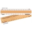 Maple wood frame 6" Architectural Wooden 2 Bevel Ruler with two white plastic scales on the front side and all wood backside with scales printed directly on the wood. It features 1/8"-1/4" Architectural Reduction and 1/2"-1" Architectural Reduction on front and 16" center, 1/8" - 1/4" Architectural Reduction and 3/8" - 3/4" Architectural Reduction on wood back.