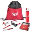 Put a little more "yes" into your vocabulary by investing in this awesome set! The 7-piece yes kit is jam packed with useful goodies. The kit includes a 25 oz. USA-made water bottle with a flip-up spout, sunglasses with UV400 lenses, and stereo earbud headphones in a cool carrying case. It also includes an 80-page notebook with pockets and a matching stylus pen, a ballpoint pen with an LED light and capacitive stylus, and a plunge-action pen with an hourglass barrel design and rubber grip. The items come in a drawstring sports bag with a front pocket. Customize the items with your company, organization, or school's name. logo, and/or slogan. Say "yes" to this promotional product!