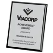 Here's a modern take on the classic plaque! The 8 x 10 black Connection Plaque features a silver plate that adds a touch of sophistication. Measuring 6W x 12H x 3/4, this plaque can be displayed via wall mount or stand alone. A polished brass loop stand is included, the surface-mount medallion is optional, and the milled medallion is not available. A standard imprint, laser engraving and screen print all take 5 days; a custom crafted medallion is 20 days.