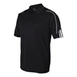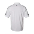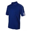 The super cool polyester pique knit with contrast color three stripe application detail on the sleeves of the Adidas Golf ClimaLite® 3-Stripe Polo is quite a winner! Made of 5.1 oz. 100% polyester this shirt has a three button placket with rib collar, side vents for easy movement and contrast piping the sleeve seams. This unique fabric wicks and transports sweat away form the skin to provide body natural temperature regulation.