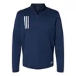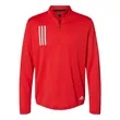Adidas 3-Stripes Double Knit Quarter-Zip Pullover ul)7.2 oz./yd2 (US), 12 oz./L yd (CA), 100% recycled polyester. Waffle texture knit construction. Moisture-management properties. Self-mock collar. Open hem sleeves. Bold 3-stripes on right chest. Performance logo on left bottom hip. This product meets the following Sustainable Style subcategory:Sustainable Materials: contains 100% recycled polyesterTo our Canadian customers: Please note adidas products cannot be exported internationally. Consult our Terms and Conditions section for more information.