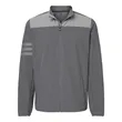 Adidas 3-Stripes Full-Zip Jacket ul)7.2 oz./yd2 (US), 12 oz/L yd (CA), 94/6 recycled polyester/elastane plain weave. Durable water-repellent finish. Soft shell stretch fabric. Half elastic cuffs. Two front zip pockets. 3-stripes on right arm. Contrast color adidas performance logo on back neck. This product meets the following Sustainable Style subcategory:Sustainable Materials: contains 94% recycled polyesterTo our Canadian customers: Please note adidas products cannot be exported internationally. Consult our Terms and Conditions section for more information.