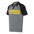 Adidas Climacool 3-Stripes Sport Shirt 4.9 oz., 95/5 polyester/elastane jacquardSelf-fabric collarTwo button placketContrast 3-stripes chest print to match adidas® logo at back neckRaglan sleevesUnderarm Climacool® fabric inserts