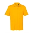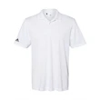 Adidas Performance Polo ul)3.8 oz./yd2 (US), 6.3 oz./L yd (CA), 100% recycled polyester . Hydrophilic finish. Ribbed knit collar with three-button placket. UPF 50+ protection. Contrast color heat transfer logo on right sleeve. Preferred decoration method is heat transfer due to lightweight fabric. This product meets the following Sustainable Style subcategories:Sustainable Materials: contains 100% recycled polyesterSustainable Manufacturing To our Canadian customers: Please note adidas products cannot be exported internationally. Consult our Terms and Conditions section for more information.