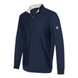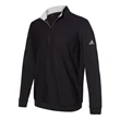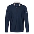 Adidas Performance Textured Quarter-Zip Pullover ul)8.1 oz./yd2 (US), 13.5 oz (CA), 91/9 recycled polyester/elastane interlock. Hydrophilic finish. Self-mock collar, cuffs, and bottom hem. Textured front body. Solid jersey sleeves and back. Right arm zippered pocket. UPF 50+ protection. Contrast logo on left sleeve. This product meets the following Sustainable Style subcategory:Sustainable Materials: contains 91% recycled polyesterTo our Canadian customers: Please note adidas products cannot be exported internationally. Consult our Terms and Conditions section for more information.