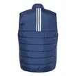 Adidas Puffer Vest ul)2 oz./yd2 (US), 3.3 oz/L yd (CA), 100% recycled polyester. 3.4 oz /yd2 (US), 5.67 oz/L yd (CA), 100% recycled polyester synthetic fill. Baffle construction. 3-stripes on back. Contrast adidas logo on right collar. This product meets the following Sustainable Style subcategory:Sustainable Materials: contains 100% recycled polyesterTo our Canadian customers: Please note adidas products cannot be exported internationally. Consult our Terms and Conditions section for more information.