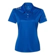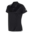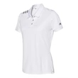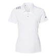 Adidas Women's 3-Stripes Shoulder Polo ul)5.3 oz./yd2 (US), 8.8 oz./L yd (CA), 100% recycled polyester jersey. Hydrophilic finish. Self-fabric collar. Three button placket. 3-stripes print on right shoulder. Open hem sleeve. Contrast-color adidas logo on left sleeve. UPF 50+ protection. This product meets the following Sustainable Style subcategories:Sustainable Materials: contains 100% recycled polyesterSustainable ManufacturingTo our Canadian customers: Please note adidas products cannot be exported internationally. Consult our Terms and Conditions section for more information.