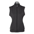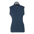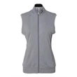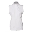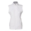 Adidas Women's Full-Zip Club Vest 7.0 oz., 87/13 polyester/elastaneSelf-collarTwo open pocketsNo curl, ribbed detailing at waistUPF 50+Metallic adidas logo on right hip