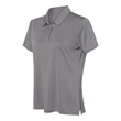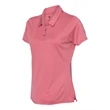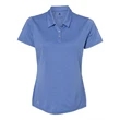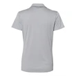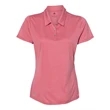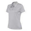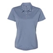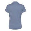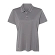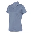 Adidas Women's Heathered Polo ul)3.8 oz./yd2, 100% polyester. Hydrophilic finish. Full heathered body. Self-fabric collar. Three-button placket. UPF 30 protection. Silver heat-transfer logo on right hip.