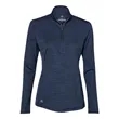 Adidas Women's Lightweight Melange Quarter-Zip Pullover ul)5.6 oz./yd2 (US), 9.3 oz./L yd (CA), 100% recycled polyester interlock knit. Self-fabric mock collar. Moisture-management properties. UPF 50+ rating. Open hem sleeve. Contrast logo on right hip. This product meets the following Sustainable Style subcategory:Sustainable Materials: contains 100% recycled polyesterTo our Canadian customers: Please note adidas products cannot be exported internationally. Consult our Terms and Conditions section for more information.