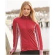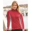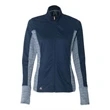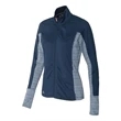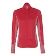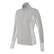 Hit the course in style with this Golf Women's Rangewear Full-Zip Jacket! The stylish garment has an 89/11 polyester/elastane collar, top sleeves, front and back yoke and 50/46/4 polyester/nylon/elastane lower back body, side inserts, underarms, and cuffs. The jacket features tonal stripe fabric underarms and lower back panel, full front zipper closure with two zipper closure pockets and a contrast Adidas logo at the right hip. In three stand-out colors and multiple sizes available, this full-zip jacket is sure to stand out from the crowd at your next event!