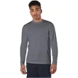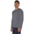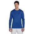 Create an unforgettable offer at your next event with this Champion Double Dry® long sleeve T-shirt! It's made of 4.1 oz., 100% polyester jersey rapid-dry interlock fabric with a UPF rating of 50+ for UV protection. It's an imported item with a reflective "C" logo on the left sleeve and a script at center back neck. Other features include a smooth self-fabric collar, cover-seamed armholes and neck for durability, and double-needle sleeves and bottom hems. This is a great way to enhance your brand's reputation!