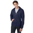 Give your customers something they'll love with this Hanes EcoSmart® full-zip hoodie! Up to 5% of its polyester is recycled from plastic bottles, while the remainder of it is composed of 7.8 oz. 50% cotton/50% polyester mid-weight, blended fleece. This imported item also has patented, low-pill, high-stitch density PrintPro® XP fabric. There's a variation for both ash (99/1 cotton/polyester) and light steel (90/10). Other features include a tag-free neck label, dyed-to-match drawcord, and three-needle, top-cover stitching along the cuffs, waistband, pockets, and hood. What a great way to introduce your brand to more clients!