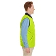Body: 2.7 oz./yd2 / 90 gsm, 100% polyester pongee with water-resistant finish; Contrast: 100% polyester brushed-back fleece with moisture-wicking performance; Insulation: 120 gsm thermal poly fill;Center front vislon zipper with reversible slider; Chest pocket doubles as decoration access; Lower patch pockets on outside; concealed pockets on inside;